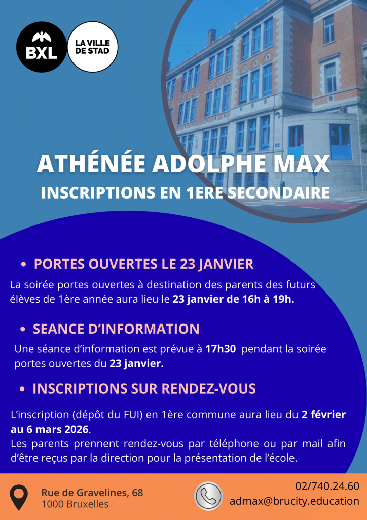 Pour toute question, merci de contacter le secrétariat au 02/740.24.60 ou de nous écrire à l’adresse admax@brucity.education